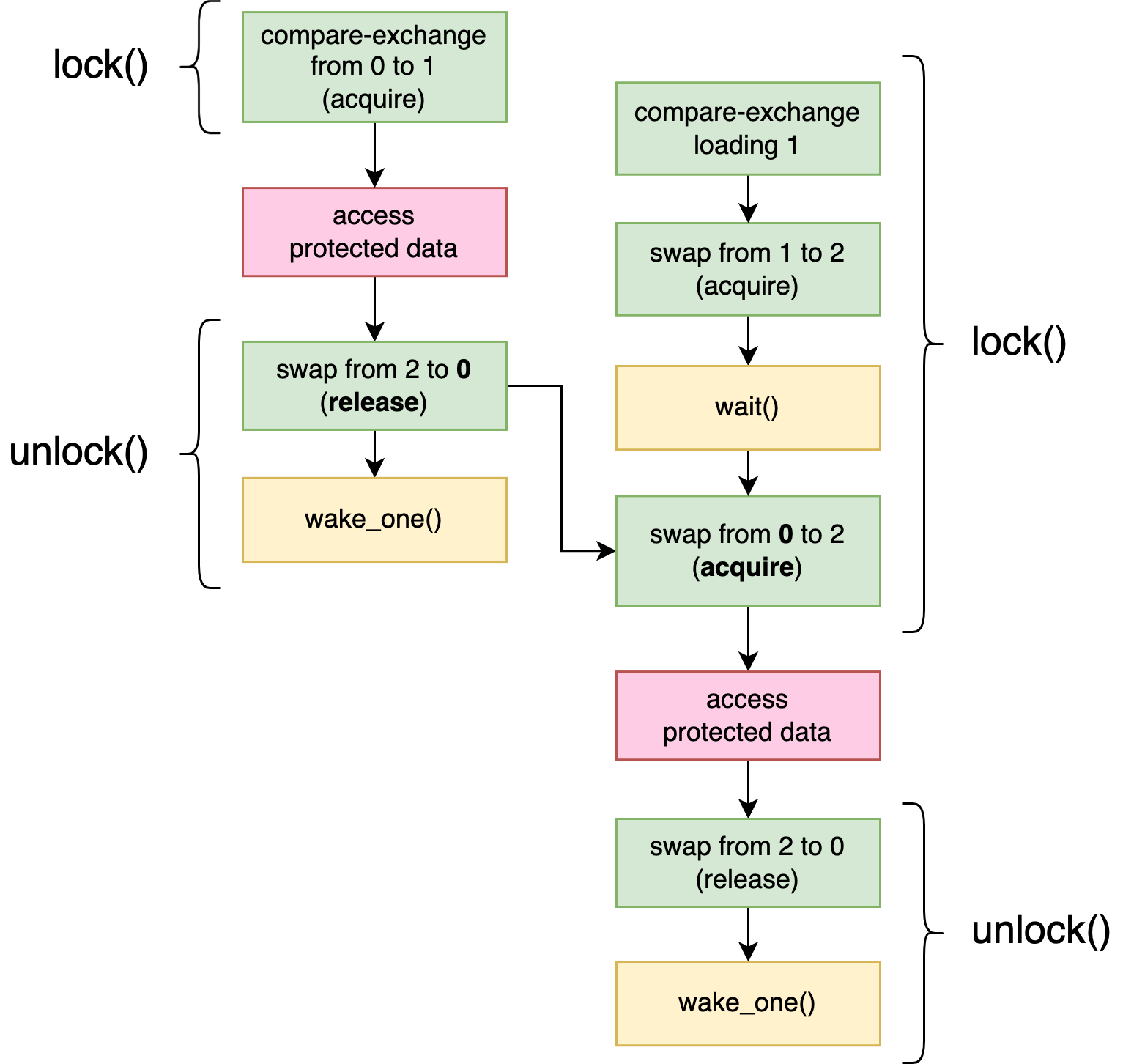 SpinLockfrom Chapter 4.A more efficient mutex tracks whether there are any waiting threads, so it can avoid an unnecessary wake operation.