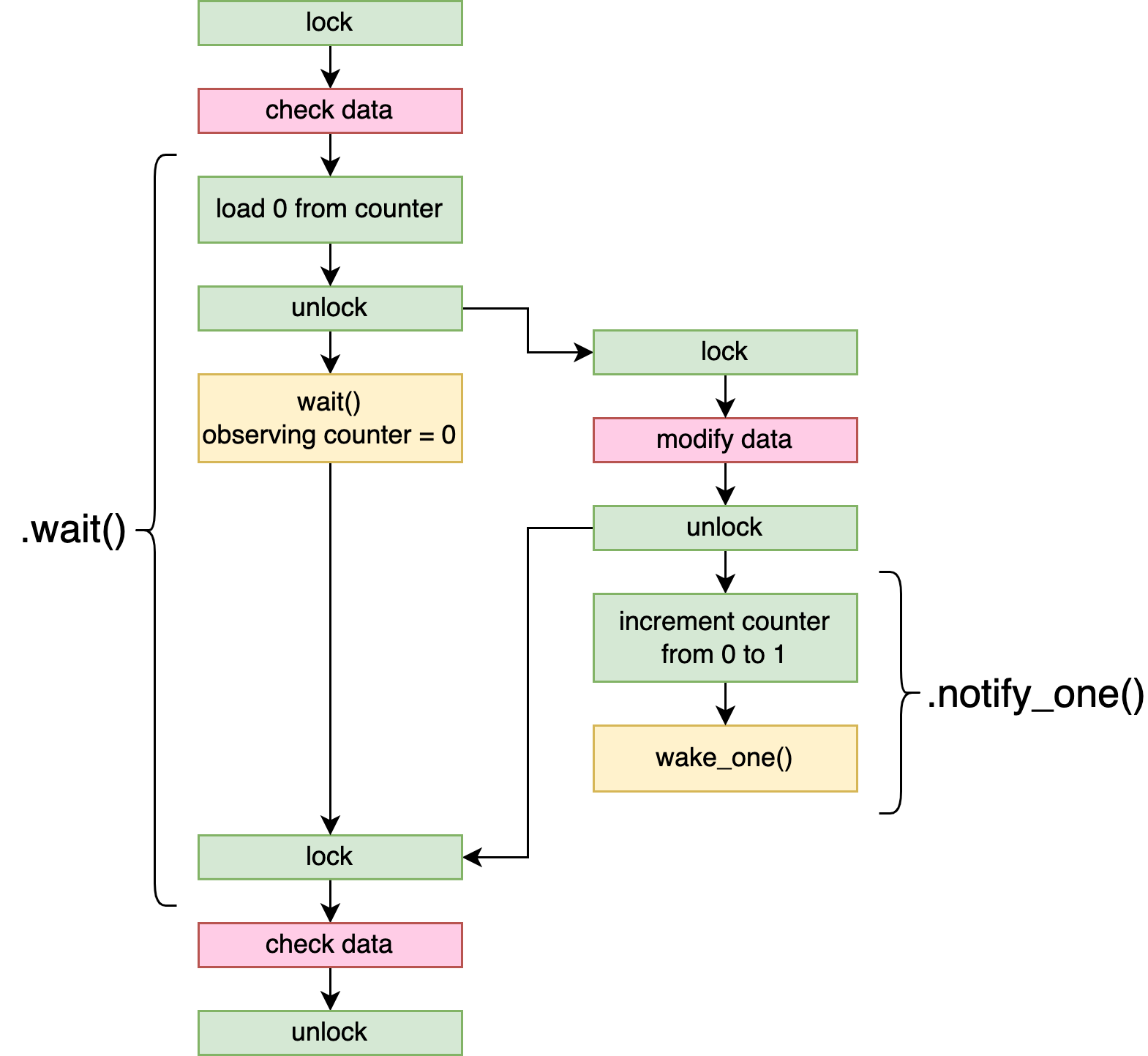 Condvar::will have to check both before and after unlocking the mutex.wait A condition variable could track the number of waiting threads to avoid unnecessary wake operations.